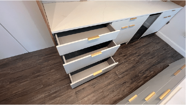 Our cabinets feature invisible slides, ensuring a sleek and modern look. With no visible hardware, they create a cleaner and more sophisticated design. Enjoy smooth, silent operation with enhanced durability for everyday use.